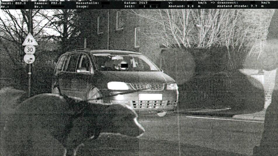 Das Auto sei mit Tempo 42 in einer 30er-Zone von dem Radargerät geblitzt worden, sagte ein amüsierter Polizeisprecher in Wesel am Freitag. Der zufällige Schnappschuss, bereits im Februar des vergangenen Jahres festgehalten, sorgte auch beim Kurznachrichtendienst Twitter für Heiterkeit.