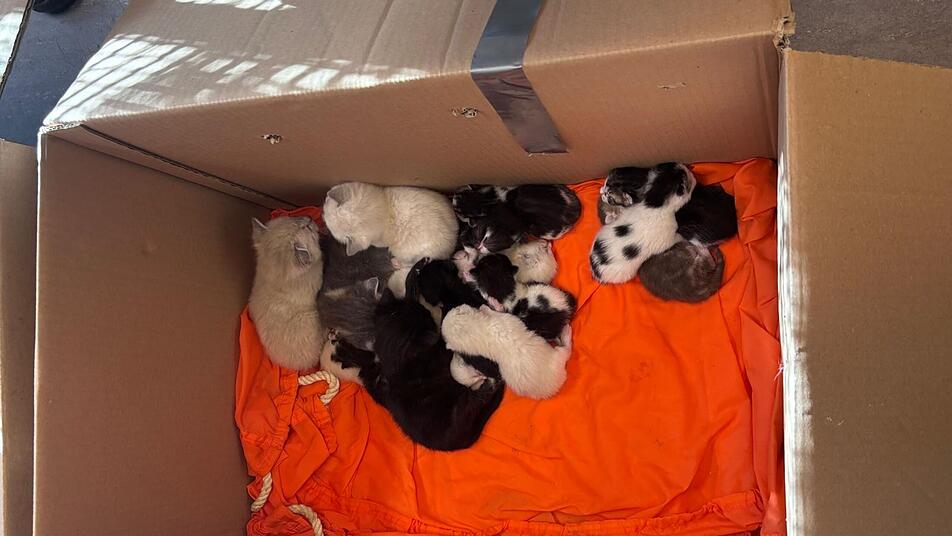 Als die Kartons vorsichtig geöffnet wurden, nutzte ein vermutliches Muttertier die Gelegenheit zur Flucht. Die anderen 22 Katzen konnten gesichert und auf die Dienststelle gebracht werden. Dort erhielten sie eine erste Versorgung. Anschließend kamen die Tiere - mit Futterspenden von hilfsbereiten Bürgerinnen und Bürgern - in das Tierheim Bremen.