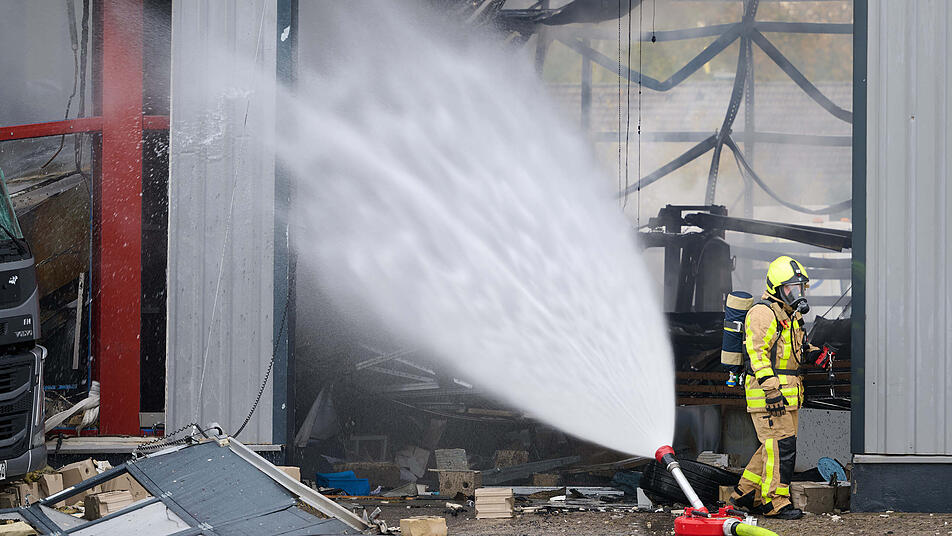 Rettungshubschrauber transportierten sie ins Krankenhaus. Wie genau es zu der Detonation kam, war zunächst nicht bekannt. Die Feuerwehr berichtete, die Detonation am Freitagmorgen (31. Oktober 2025) habe einen Brand entfacht. Die Halle der Lkw-Werkstatt in der Nähe einer Tankstelle wurde zerstört.