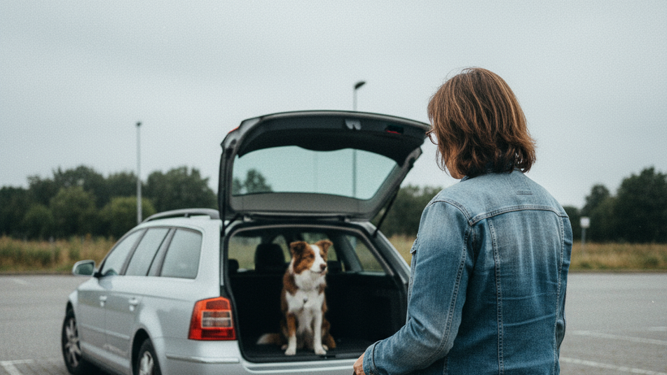 Denn mit Chantal könne sie Trockenübungen machen, bevor sie dann Mottchen, ihren echten Hund, an die Leine nehme. Keine Fehler, kein Stress – nur die Leine und etwas Fantasie. Mottchen wartet währenddessen brav ein paar Meter weiter im Kofferraum – ob er zustimmend mit dem Schwanz wedelt oder den Kopf schüttelt, bleibt offen.