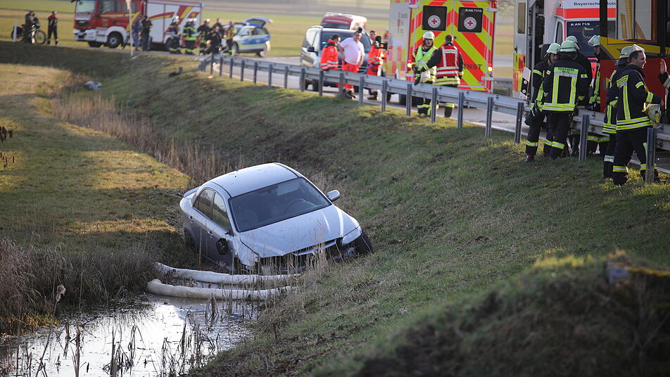 Betrunken in Wassergraben gefahren - Feuerwehr dämmt auslaufende Schadstoffe ein