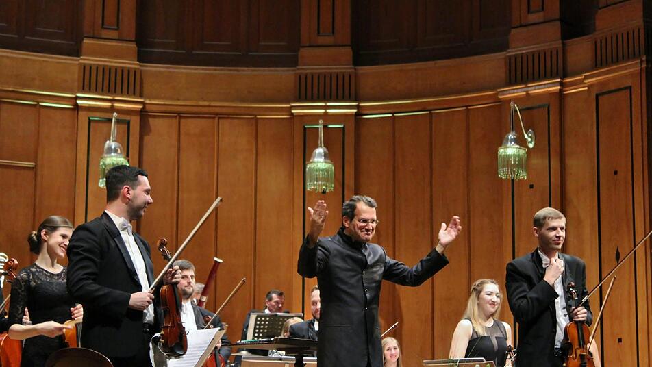 großvolumige Klänge wie beim Kaiserwalzer, den das Publikum im Geiste wohl mitsummt. Die Polka "Ohne Sorgen" gestaltet der Dirigent zusammen mit dem Orchester zum Wunsch für das neue Jahr ans Publikum. Und schon sind wir bei den Zugaben und wieder im Musivereinssaal in Wien mit dem Donauwalzer und dem Radetzkymarsch. Mit einem deutlichen Unterschied: In Bad Kissingen klappt das mit dem mal zurückhaltenden und dann wieder kräftigen Mitklatschen und dem zwischendurch schweigenden Zuhören deutlich besser. Ah, geh.