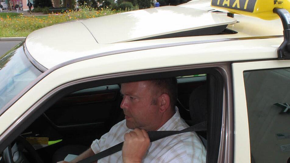 Auch Taxifahrer Joachim Metz hält eine Gurtpflicht für sinnvoll. Eine bedrohliche Situation hat er in den 15 Jahren, in denen er Taxi fährt, noch nicht erlebt. Im Übrigen gelte die Befreiung von der Gurtpflicht nur im "Pflichtfahrgebiet", also nicht bei Überlandfahrten. Wenn ein Gast nach Schweinfurt oder Würzburg will, muss sich der Taxifahrer ohnehin anschnallen. "Das Argument mit den Überfällen ist an den Haaren beigezogen, denn überfallen wird man eher außerhalb der Stadt", meint Joachim Metz. Dass die Situation in den Problemvierteln von Großstädten anders aussehen könnte, gesteht Metz allerdings zu.