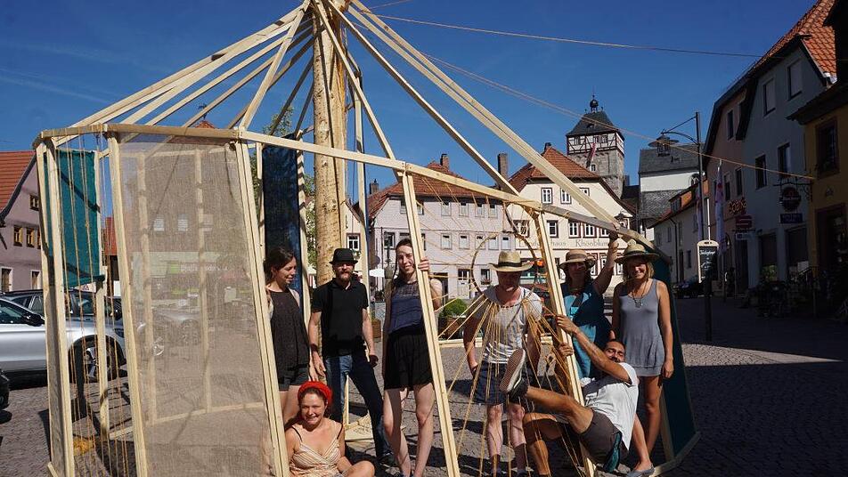 Wer in diesen Tagen über den Bischofsheimer Marktplatz gegangen ist, der konnte das Entstehen eines Kunstwerkes, genauer einer begehbaren Skulptur, erleben. Elf Schüler der Staatlichen Berufsfachschule für Holzbildhauer haben gemeinsam mit ihrem Lehrer Michael Kühnert drei Tage an der Umsetzung des Projekts gearbeitet. Es ist eine Aktion im Rahmen der diesjährigen Triennale der Kunsthalle Schweinfurt, bei der die Holzbildhauerschule eine der Außenstellen ist.