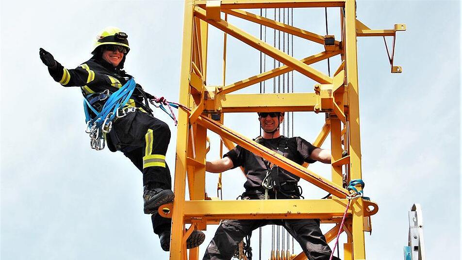 Am diesjährigen Lehrgang über die Absturzsicherung bei Einsätzen nahmen zehn Feuerwehrleute aus Hammelburg, Oberthulba und Reith teil. Nach theoretischem Unterricht über Sturzphysik, Haltepunkte, Personensicherung und Erste Hilfe wurde der in fünf Tage aufgeteilte Kurs mit zwei praktischen Übungen abgeschlossen. Den waagerechten Vorstieg hatten die Lehrgangsteilnehmer bereits an der Bad Kissinger Ludwigsbrücke geübt. Am Samstag folgte nun abschließend der senkrechte Vorstieg am Baukran hinauf.