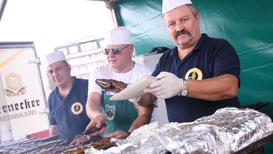 Im Rosengarten glühen die Grillkohlen schon vormittags. Der Verein der Sportangler legt hier Makrelen auf den heißen Rost. Ein seltener Gaumenschmaus, wie Vereinsvorstand Uwe Kiesel erklärt. "Makrelen sind immer etwas Besonderes, weil sie eigentlich nicht in Restaurants angeboten werden, sondern eher bei Fischfesten von Angelvereinen." 350 Gramm bringt eine Makrele im Durchschnitt auf die Waage. Die Sportangler setzen bei der Zubereitung auf natürliche Aromen: "Wir versuchen die Makrelen so pur wie möglich zu halten, damit der Fischgeschmack optimal rüberkommt." Ein Geheimrezept steckt trotzdem hinter der Marinade, an das sich der Verein seit über 20 Jahren hält. "Wir legen die Makrelen zwei Tage vorher ein, lassen sie entsprechend ziehen und dann werden sie auf den Grill geworfen." Zur salzigen Makrele sollte ausreichend getrunken werden, am besten Bier oder Wein, empfiehlt Uwe Kiesel. Selbst geangelt sind die Fische allerdings nicht, sagt der 50-Jährige: "Makrelen kommen aus dem Meer und wir haben hier die Saale - das klappt also leider nicht."