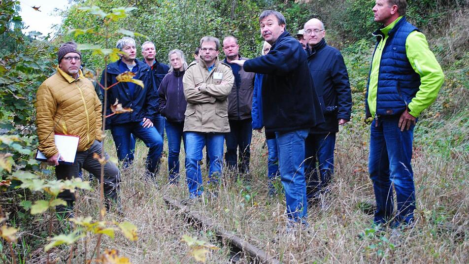 Bei einem kurzfristig anberaumten Außentermin schritt oder besser gesagt stolperte er mit seinen Räten die Bahnschienen auf Riedenberger Gemarkung ab. Durch dichtes Dornengestrüpp, undurchdringliche Hecken und teils schon meterhohe Bäume schlugen sich die Gemeinderäte mühsam.