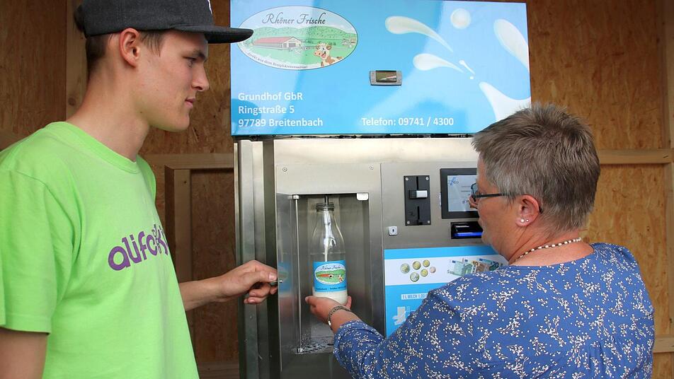 Mit dem Milchlaster müssen die Landwirte aber nicht extra anrücken. Stattdessen haben sie einen zweiten mobilen Tank, den sie in Breitenbach befüllen und die 25 Kilometer mit dem Lieferwagen nach Bad Kissingen transportieren. "Ich schätze, dass wir alle zwei Tage hierherkommen müssen, um die Tanks zu tauschen", fügt er hinzu. Marktbetreiber Klaus Rüttger ist überzeugt, dass der Milchautomat, der 24 Stunden geöffnet hat, gut angenommen wird. "Ich habe viele Kunden, die bewusst regionale Lebensmittel kaufen", sagt er. Bedenken, dass sein Milchabsatz einbricht, hat er nicht. Die Leute, die das Lebensmittel frisch zapfen, würden das bewusst machen und nicht zur homogenisierten Variante greifen. Ein Liter Milch kostet am Automaten ein Euro.