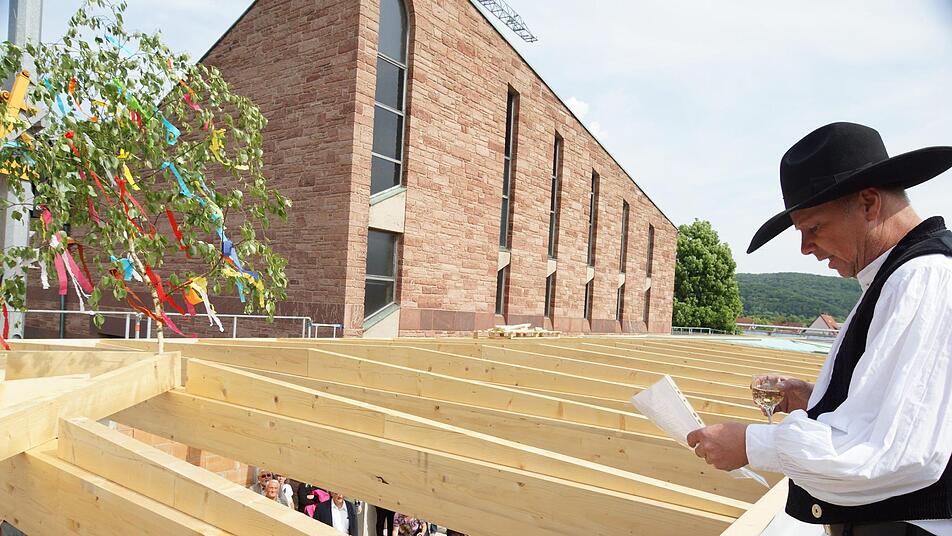 Ein halbes Jahr nach dem Spatenstich konnte die Gemeinde am Donnerstag bereits Richtfest feiern. Dabei hatte es vor zwei Wochen noch gar nicht danach ausgesehen, dass der Bau so weit wäre. "Auf einmal hatten wir dann Mühe, den Termin für das Richtfest so zu setzen, dass das Dach nicht schon fertig gedeckt ist", sagte Pfarrer Robert Augustin.