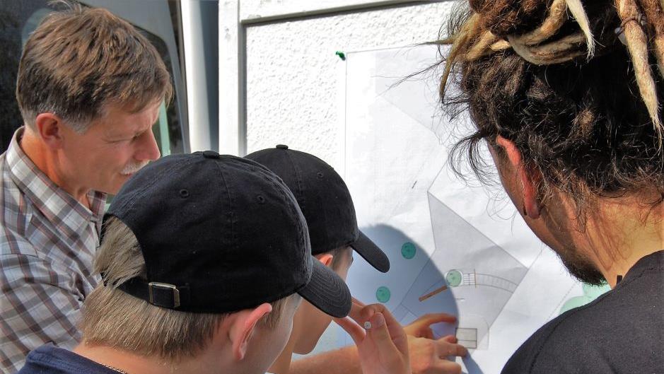 Ein Dutzend Jugendliche zwischen zwölf und 20 Jahren hatten sich am Donnerstag dazu eingefunden. "Wir wollen Leute in die Planung mit einbeziehen, die diesen Platz aktiv nutzen", lud Pfülb die Skater zur kreativen Planung auf. "Ihr wisst am besten, wo was hinkommen soll." Nachdem die erste Enttäuschung verwunden war, dass keine neuen Geräte angeschafft werden, sondern nur die vorhandenen neu aufgestellt werden sollen, ließen die Jugendlichen ihren Gedanken freien Lauf. In einem für Laien geradezu babylonischen Sprachgewirr englischer Fachausdrücke ging es um Flatrails, Quarterpipes, Ledges und Manual Pads. Als Beobachter musste man sich fast wundern, dass Sitzgelegenheiten auf dem Platz auch als solche bezeichnet wurden. Kleine Zettel mit Darstellungen der einzelnen Geräte wurden auf dem an einer Stellwand befestigten Plan hin und hergeschoben, die Wiesenfläche mit Maßband vermessen. Im Gespräch zeigte sich dann, dass es den Jugendlichen nicht nur um die Aufstellung der Geräte ging, sondern sie auch vorhandene Gefahrenpunkte im Gelände entschärfen wollten.
