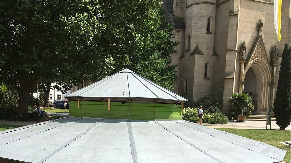 Immer wieder haben sich Passanten in den vergangenen Wochen gewundert, dass der Marienbrunnen noch eingehaust ist: Während alle anderen Brunnen in der Stadt längst plätscherten, sah es vor der Bad Kissinger Stadtpfarrkirche so aus, als wäre die Winter-Einhausung vergessen worden. "Die Stadt Bad Kissingen hatte den Marienbrunnen nach dem Winter nicht in Betrieb genommen, weil eine Betonsanierung durchgeführt werden sollte", teilte nun Mario Selzer, persönlicher Referent von Oberbürgermeister Kay Blankenburg, auf Nachfrage mit. In der vergangenen Woche ging der Brunnen aber dann doch in Betrieb - vorerst ohne Sanierung.
