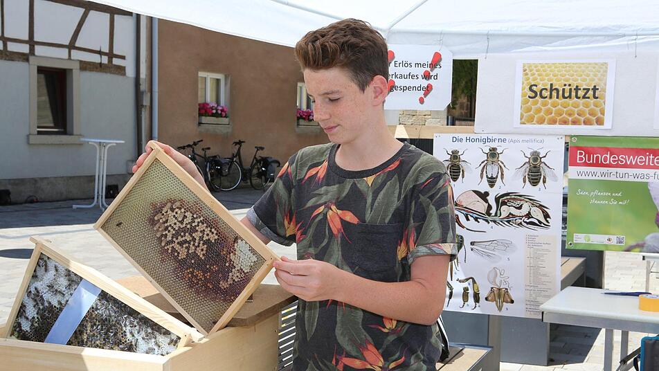 Als Leopold Katzenberger erfahren hat, dass die Münnerstädter Imker wieder beim Stadtfest "Musik und Märkte" auf dem Stenyer Platz und im Amtsgebäude vertreten sind, hat nachgefragt, ob er mit einem Info-Stand dabei sein darf. "Ich wurden mit offenen Armen empfangen", sagt er. Die Imker haben sogar noch zusätzliches Infomaterial zur Verfügung gestellt. An seinem Stand machte der Nachwuchsimker darauf aufmerksam, wie man die Bienen schützen kann und informierte über das Bienensterben. "Solche Aktionen sind uns immer willkommen", sagt der Vorsitzende des Imkervereins Münnerstadt und Umgebung, Dieter Schölzke, dazu. "Das fördert die Jugend und das ist wichtig."