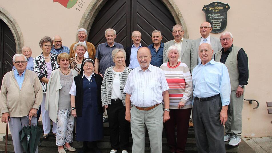 18 ehemalige Schulkollegen, sechs Frauen und zwölf Männer, waren gekommen. Einige hatten dafür weite Anreisen auf sich genommen. Die weiteste hatte Franz Gehring, der in den USA (Minnesota) lebt. Neben dem gemütlichen Plausch bot das Programm auch Zeit für kleinere Erkundungen in Münnerstadt, zum Beispiel zum Verlobungstempel. Außerdem wurde das Klassentreffen für einen Friedhofsgang genutzt, wo man der verstorbenen Schulkollegen gedachte. Ein gemeinsamer Gottesdienstbesuch stand ebenso auf dem Programm.