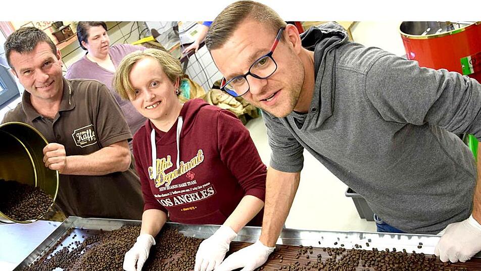 Seit ein paar Tagen werden er und seine fünf neuen Kollegen eingelernt. Wo im Kloster Maria Bildhausen früher Knacker und Koteletts über die Theke gingen, soll es für die Kundschaft neuerdings Kaffee geben. Aus der ehemaligen Metzgerei im Klosterladen wird eine offene Kaffee-Rösterei. Ein Inklusionsprojekt, das man sehen, riechen, hören und schmecken soll.