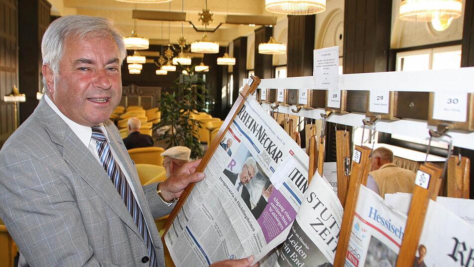"Der Lesesaal ist täglich von 9 bis 21 Uhr geöffnet, an 365 Tagen im Jahr", erzählt der Gästeführer in Altersteilzeit. An 47 Haken hängen Tageszeitungen aus ganz Deutschland: von der Allgäuer Zeitung bis zur "Zeit", von der Passauer Neuen Presse bis zum Darmstädter Echo und vom Südkurier bis zu den Kieler Nachrichten. "Früher waren es sogar an die 90 Zeitungen, aber wir haben das Leseverhalten der Gäste beobachtet und dann ausgedünnt", berichtet Markert.