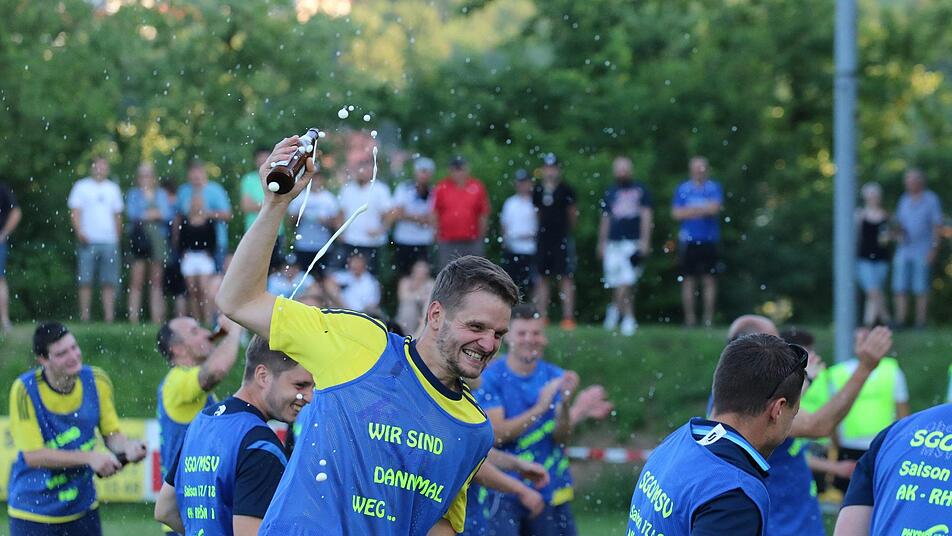 Bei fast 30 Grad Hitze hatten die Releganten im Hammelburger Sportpark rasant losgelegt. Das Tempo war allerdings erwartungsgemäß nicht über 90 Minuten konstant zu halten. Die anfänglich brütende Hitze verlangte den jungen Akteuren alles ab. Erst als sich allmählich Schatten auf das Hammelburger Spielfeld legte, waren die Temperaturen auch für die Sportler erträglich. Die knapp 1200 Fans hatten sich größtenteils die kühlen, schattigen Plätze gesucht. Die tolle Stimmung im Sportpark bewies wieder einmal: Relegation ist den Rhönern heilig. Für die selbst ernannten "Keilerschweine" aus Oberleichtersbach und Modlos gab es nach dem Abpfiff sowieso kein Halten mehr. Mit Trommeln und Trompeten wurde die Aufstiegsparty eröffnet.