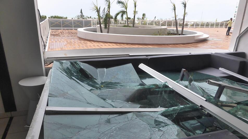 Draußen vom Hurrikan zerfetzte Palmen, drinnen Scherben: das Hotel der Familie Pesce. Familie Pesce