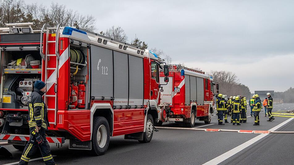 Brand auf A3 im Kreis Erlangen-Höchstadt - Aufräumarbeiten bis in den Abend