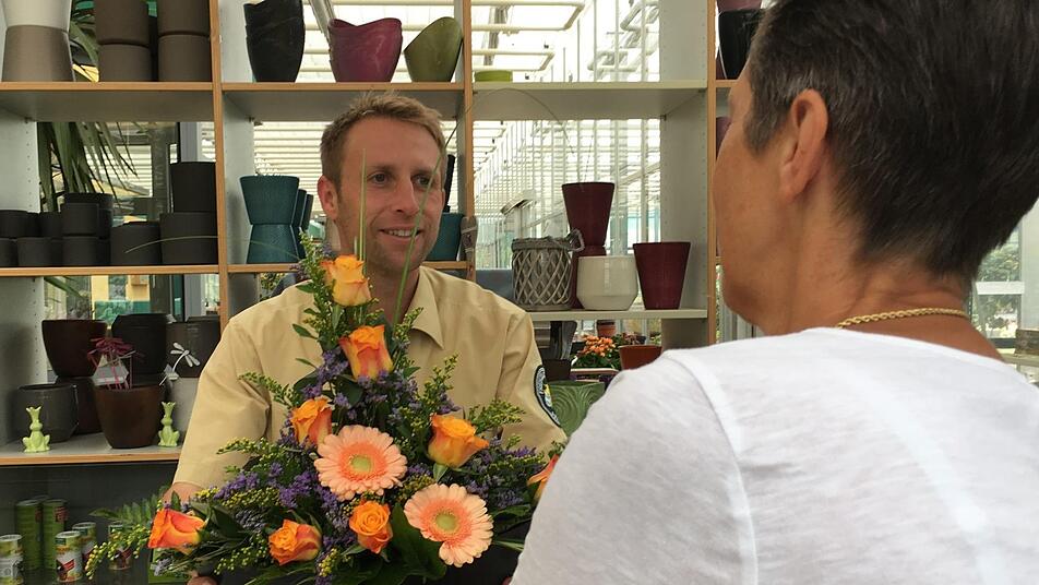 So wie ein Paar aus Großgressingen, das hier einen Spezialauftrag hätte - Blumen und Gestecke für die Hochzeit der Tochter. "Wir haben Kundschaft auch aus Bamberg und Schweinfurt", lässt Chef Donhauser wisse. Und seit drei Jahren mache man Plus, worauf er sehr stolz ist. Freilich hat er selbst nichts davon, eh alles Staatsgeld, das dann so wie der Erlös des Handwerkermarktes wieder ans Finanzministerium geht.
