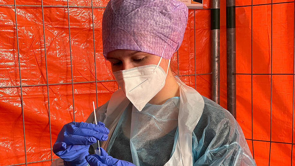- Danach wird in einer der Testboxen ein Abstrich im vorderen Nasenbereich genommen