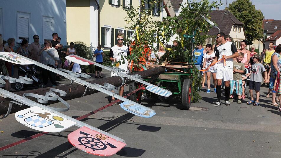 Der Kirchweihbaum mit Zunftzeichen. Foto: Rudolf Mader
