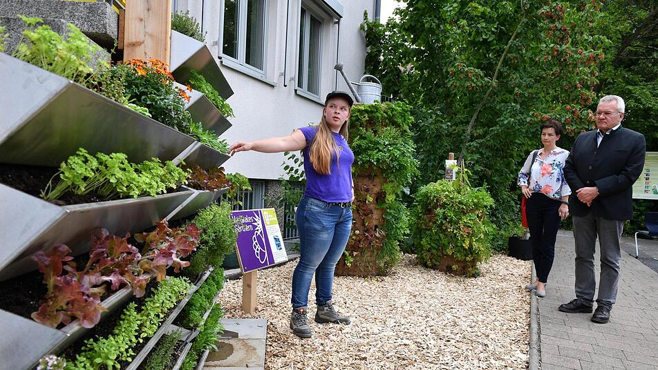 Ein Salatkopf hier, Erdbeeren da, und darüber frische Petersilie. Aus jeder Nische dringt etwas Grünes hervor. Der Pflanzturm ist eine von vielen Methoden, wie Kräuter und Gemüse auf kleinstem Raum angebaut werden können. "Ganz oben werden die Pflanzen eingesetzt, die lange Wurzeln bilden, während Pflanzen, die viel Wasser benötigen nach unten kommen", erklärt Sarah Helmert, Mitarbeiterin der Bayerischen Landesanstalt für Weinbau und Gartenbau (LWG) in Bamberg. Im Rahmen des "Urban Gardening"-Projekts betreut sie die Pflanzen des neuen Demonstrationsgartens in Bamberg.