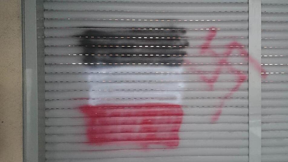 Wie die Polizei mitteilt, schlugen Unbekannte vermutlich zwischen 2 und 5 Uhr morgens die Glaseingangstür zum Anwesen im Balthasargässchen in Bamberg ein. Zudem sprühten sie an die Hausfassade unter anderem ein Hakenkreuz und eine schwarz-weiß-rote Flagge mit Hakenkreuz.