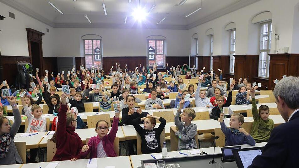 Können Computerprogramme gegen menschliche Spieler gewinnen? Um die Antwort auf diese Frage herauszufinden, sind am Samstag über 150 junge Studierende zur Vorlesung von Christoph Schlieder gekommen.