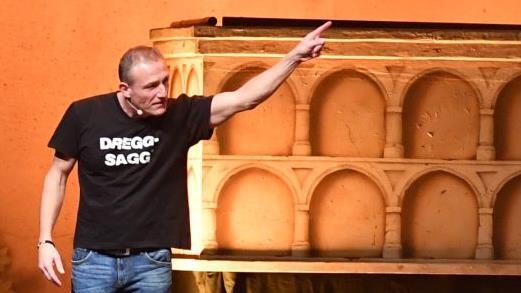 Man kennt das Shirt. "Dreggsagg" steht darauf, ein sogenanntes Markenzeichen. Einige Fans von Michl Müller haben es sich sogar besorgt und angezogen, sich der Selbstbezeichnung anschließend. Es gibt jetzt auch Kühlschrankmagneten und Mützen und Pralinen: Dreggsagg, Dreggsagg, Dreggsagg. Der Künstler verschwindet hinter den Boxen seiner Merchandise-Produkte.