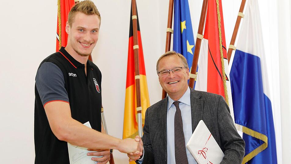 22. August 2017, 15.01 Uhr - dieser Zeitpunkt ist ein historischer Moment für Leon Radosevic. Der kroatische Center des deutschen Basketball-Meisters Brose Bamberg erhält im Rathaus aus den Händen von Oberbürgermeister Andreas Starke die Einbürgerungs-Urkunde. Die Fotografen forderten beim Festhalten dieses Moments, dass sich die beiden Protagonisten gegenseitig anschauen - OB Starke meinte, es sei eigentlich ein Aufschauen, denn der ihm gegenüber stehende Hüne weist ein Gardemaß von 2,08 m auf und gehört damit wohl zu den größten Männern, die in Bamberg die deutsche Staatsbürgerschaft erhielten. Nach Auskunft von Starke sind das im Jahr etwa 100 bis 120 Personen.