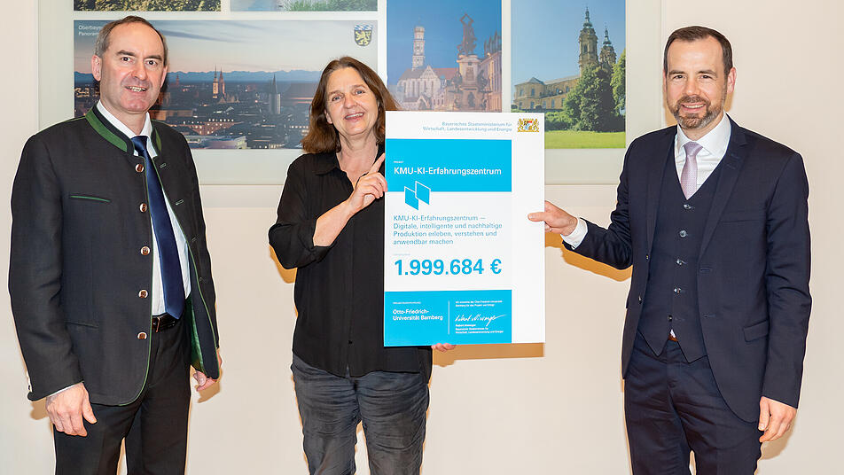 Die Universität Bamberg bringt bei dem Projekt unter anderem ihre langjährige Erfahrung im Bereich menschenzentrierte Künstliche Intelligenz (KI) ein. Im Fokus stehen interaktive Systeme, bei denen Mensch und KI zusammenarbeiten. Forschende aus der Informatik entwickeln entsprechende Ansätze in engem interdisziplinären Austausch mit den Humanwissenschaften. „Wir verstehen es als unsere Aufgabe, wissenschaftliche Lösungen für drängende Probleme zu erarbeiten, zum Beispiel im ökonomischen und technologischen Bereich“, sagt Universitätspräsident Kai Fischbach. „Mit dem KMU-KI-Erfahrungszentrum können wir unser Engagement für Bamberg und Oberfranken in dieser Hinsicht weiter verstärken. Darauf freuen wir uns.“