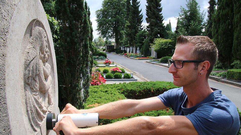 Hinterbliebene werden auf dem Bamberger Friedhof von Schildern überrascht, die zur Sanierung der Grabsteine auffordern. Die Verwaltung überprüft alle Steine mit einem speziellen Gerät auf die Standfestigkeit - 16 000 Stück im Jahr.