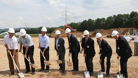 Mit dem offiziellen ersten Spatenstich und der anschließenden Grundsteinlegung startete der Bau einer neuen Logistik-Halle für den Scheßlitzer Verpackungs-Hersteller Cebal. Dabei griffen die Herren in den dunklen Anzügen nicht nur zum Spaten, sondern anschließend auch zur Maurerkelle und mauerten den Grundstein.
