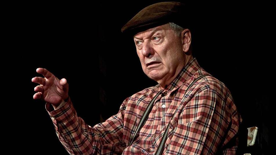 Dieser Mann kommt mit wenig aus. Ein hölzerner Klappstuhl, darauf ein frühlingsbuntes Sitzkissen, darunter eine Flasche Pils, dahinter fünf schmale Bretter, eine stilisierte Betonwand (gegen die noch gefahren werden sollte, zumindest verbal). Sparsam, aber gerade darin ungeheuer ausdrucksvoll, sind auch Mimik und Gestik. Viele Worte verliert Gerd Dudenhöffer, besser bekannt als Heinz Becker, den er seit drei Dekaden verkörpert, ohnehin nicht. Schiebermütze (vulgo, also Saarpfälzisch, auch "Batschkapp" genannt), breite Hosenträger und kleinkariertes Hemd sind geblieben.
