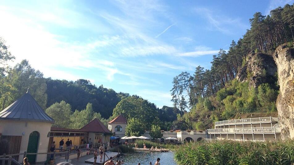 Die für die Fränkische Schweiz charakteristischen weißen Felsen bilden den Rahmen für das Felsenbad Pottenstein und geben dem Aufenthalt eine ganz spezielle Atmosphäre.