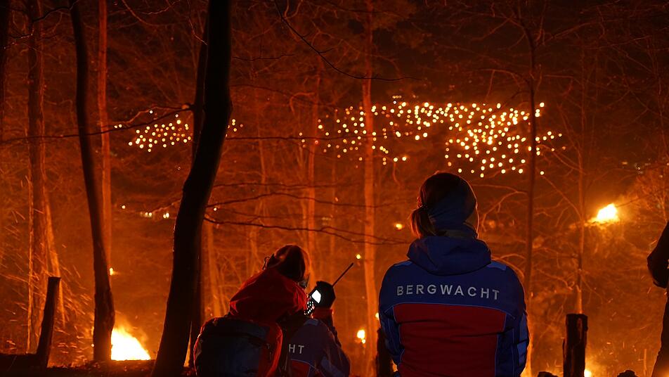 Traditionell werden am Dreikönigsfeiertag hunderte Bergfeuer entzündet, um die kirchliche Prozession durch Pottenstein zu umrahmen. Diese Lichterprozession ist ein Besuchermagnet für die Stadt in der Fränkischen Schweiz. In diesem Jahr waren nach Schätzungen der Polizei rund 12.000 Besucher zu Gast.