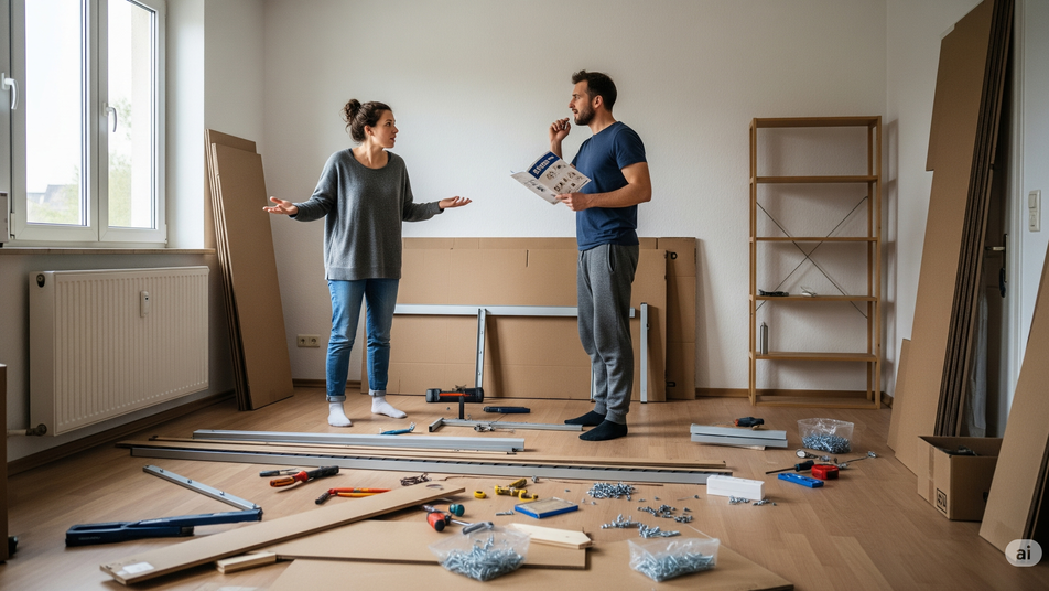 Ein 30-jähriger Mann und eine 43-jährige Frau waren in ihrer frisch bezogenen gemeinsamen Wohnung in Coburg damit beschäftigt, Möbel aufzubauen. Während dieser Tätigkeit kam es zu einem Beziehungsstreit, in dessen Verlauf der Mann den Fernseher in der Wohnung beschädigte. Aus Angst verschloss sich die Frau im Badezimmer und rief die Polizei.