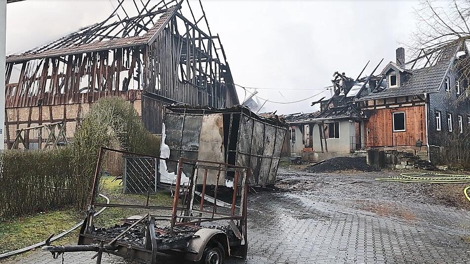 Schadensträchtiger Großbrand auf Hof im Kreis Coburg - Senior verletzt in Klinik
