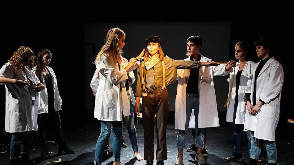 Ein Heer von Helfern war dafür notwendig. Und stand zur Verfügung. Das Stück zeigt einige konkret Beteiligte, historische Personen. Alle weisen dem Staatsanwalt gegenüber (Emilie Schorr) die Schuld von sich, weisen sie anderen zu, vom scheinbar rational-wissenschaftlichen Anstaltsleiter Faltlhauser (Luca Schenk mit beeindruckender schauspielerischer Intensität), über das weitere, nur zum Teil später erschrockene medizinische Personal (Tomiris Issin, Anetta Chiantone, Amy Ellis, Lea Reichel, Emilia Härty) bis zur kaltschnäuzigen Pauline Kneißler (Valentina Gaudiello), der anzusehen ist, dass sie gewisse Befriedigung fand bei der Umsetzung der "Anordnungen" von oben. Sie war auch "im Osten" eingesetzt, wo sie kampfunfähige deutsche Soldaten "erlöste".