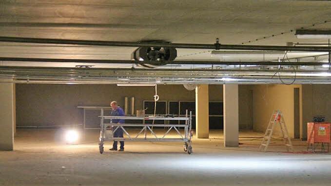 "In der Tiefgarage fehlen noch der Bodenbelag, die technische Ausstattung und die Markierungen", erläutert Carola de Rooij, eine von drei Bauleiterinnen der Wohnbau, die für das gesamte Projekt zuständig sind. Sie betreut den Neubau am Albertsplatz und die Kubenhäuser, die sozusagen im Innenbereich auf der Tiefgarage entstehen und künftig die Adresse Georg-Hansen-Weg haben werden. Dort wird die Haustechnik gerade installiert, und der Fahrstuhl erlebt seine ersten Funktionsprüfungen.