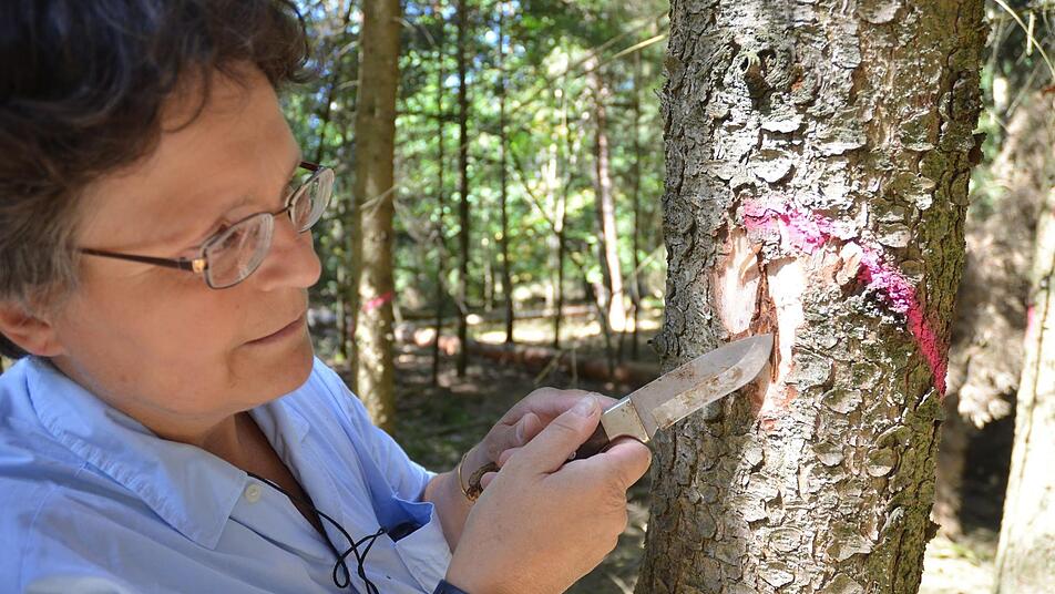 Die Giebel müssen gehäckselt werden. "Verbrennen geht jetzt natürlich nicht", sagt sie sicherheitshalber dazu. Wer schnell handelt, kann den Schaden begrenzen. "Was früh erkannt wird kann durchaus noch als Nutzholz verkauft werden", sagt Manfred Herter. Die Preise geben zwar gerade nach, doch alles was als Nutzholz weg geht, bringt mehr als Brennholz.