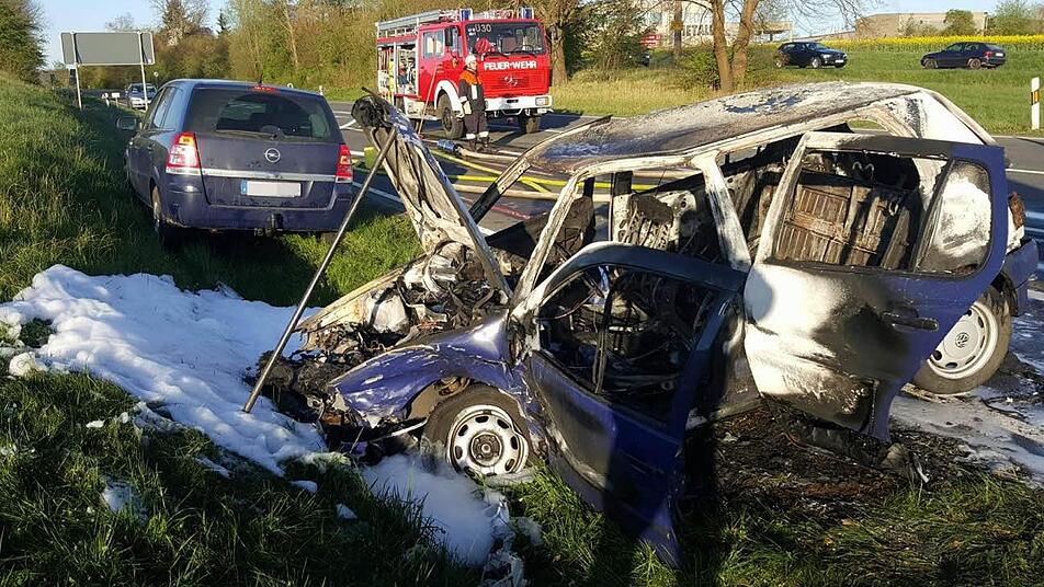 Der ausgebrannte VW und der stark deformierte Opel hatten nur noch Schrottwert. Der Gesamtschaden wird mit 15.000 Euro beziffert. Die Bundesstraße musste während der Unfallaufnahme auf Höhe Kaltenbrunn für rund drei Stunden komplett gesperrt werden. Der Verkehr wurde durch Kaltenbrunn umgeleitet, so dass es zur Berufsverkehrszeit zu keinen größeren Behinderungen kam. Die Freiwilligen Feuerwehren aus Untermerzbach und Kaltenbrunn waren mit 30 Einsatzkräften im Einsatz.