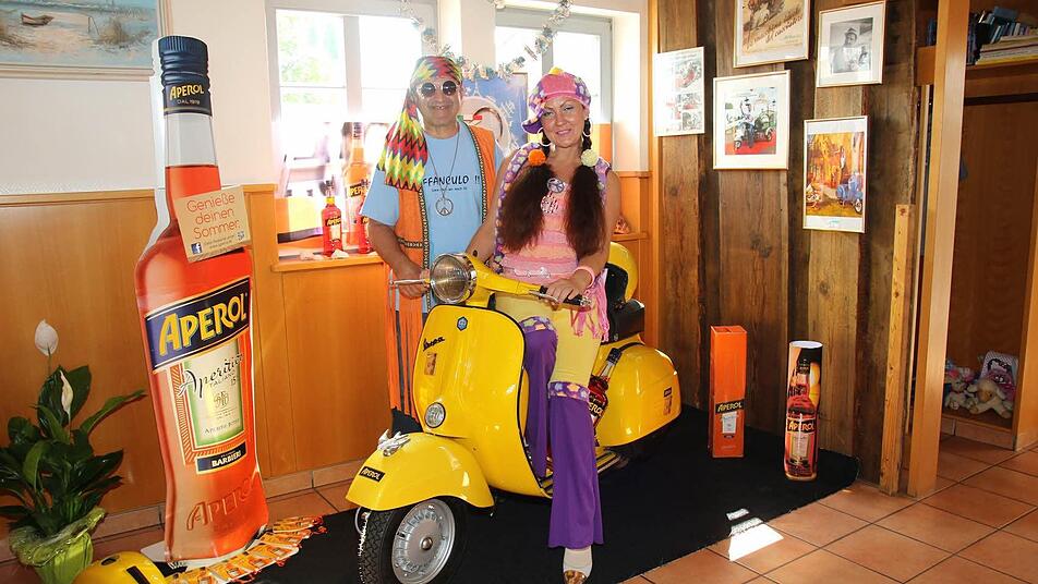 So hatten sechs Frauen in 250 Stunden Handarbeit eine alte Vespa mit einen Häkelkleid verschönert. "Manchmal haben wir auch was aufgetrennt, weil es nicht perfekt war", sagte Andrea Jahn. "Die 70er Jahre" war das Motte des Treffens und deshalb waren auch gehäkelte Klorollenhüte, wie sie in den 70er Jahren in Mode waren, neben anderem Zubehör im Angebot. Auf einem extra Platz stellte der Mitorganisator Josef Sanfilippo seine 35 Vespas ab dem Baujahr 1970 aus. "Zuerst kommt meine Frau und dann meine Vespas", sagte Sanfilippo scherzhaft. Ein besonders Gefühl sei es, eine Ape, zu deutsch: Biene, zu fahren. "Man fällt auf und wird immer ein wenig belächelt", sagte Marcus Schmölzig aus Weidhausen.