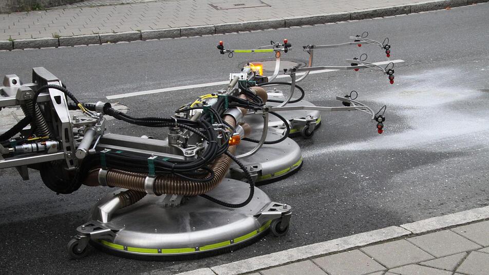 "Der Motor schaltet sofort ab", sagt der Fachmann. Nichtsdestotrotz fließen die Reste im Schlauch auf die Straße. "Ich kann aber nicht verstehen, dass die Autofahrer so wenig Rücksicht nehmen", ergänzt er. Denn der eilig herbeigebrachte Ölbinder ist eine erste wichtige Maßnahme, um den Schaden in Grenzen zu halten. Eine knappe halbe Stunde später war dann ein Spezialeinsatzgerät am Postkreisl. Der ADAC Neustadt besitzt einen Lastwagen, der mit einer speziellen Vorrichtung zur Ölspurbeseitigung - und anderer Kraftstoffe - ausgerüstet ist. Mit Hochdruck wird der Diesel aus den Poren der Straßendecke regelrecht hervorgeschleudert. Ein spezielles Absaugsystem nimmt dieses verschmutzte Wasser dann auf, um es in Tanks auf dem Laster zu leiten. Die Straße ist nach dem etwa halbstündigen Einsatz komplett gereinigt und man muss zweimal hinschauen, um zu sehen, dass es an dieser Stelle eine Verunreinigung gegeben hat.