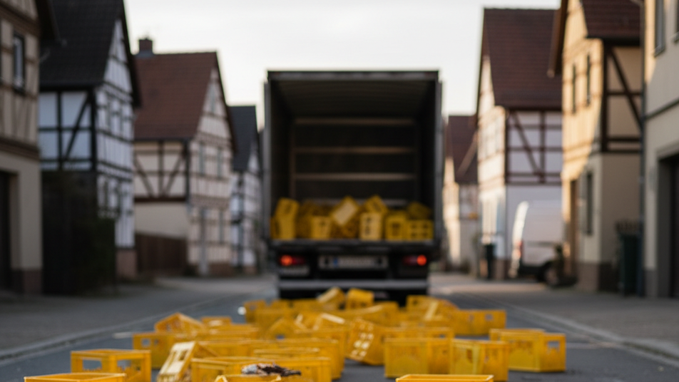 Aufgrund unzureichender Ladungssicherung verlor er von seinem Auflieger in einer Rechtskurve rund 200 bis 300 Getränkekästen. Durch das Herabfallen der Kästen wurden angrenzende Grundstücke und Grundstückszäune beschädigt.