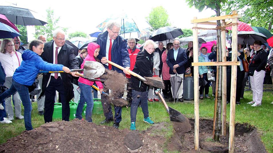 Wenige Stunden nach der Ankunft gab es für die französischen Gäste und ihre deutschen Gastgeber am "Place de l'amitié" (am Brunnen neben der Realschule) eine Empfangszeremonie und es wurde das offizielle Geschenk der Stadt Sainte-Luce gepflanzt, eine "Castania Sativa" (Esskastanie). Laut Bürgermeister German Hacker (SPD) ist es der erste Baum dieser Art in Herzogenaurach. Die gleiche Baumart wurde schon von Herzogenaurachern im Departement Loire Atlantique gepflanzt und soll sehr gut gedeihen. In seinem Grußwort wies Bürgermeister Hacker am Brunnen darauf hin, dass Wasser auch Leben bedeutet und damit auch die 30-jährige Partnerschaft symbolisiert. Für seinen Amtskollegen bedeutet der Baum auch eine Verwurzelung der beiden Partnerstädte und er wünscht sich, dass der Baum viele Früchte trägt, so wie auch die Verbindung der beiden Städte Früchte trägt. Der Baum ist sechs Meter hoch und braucht rund 20 Jahre, um bis zu 20 Meter hoch zu werden.