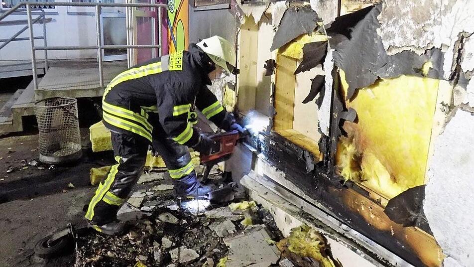 Beim Eintreffen der Höchstadter Feuerwehr, die mit Einsatzleitwagen, Hilfeleistungs-Löschgruppenfahrzeug und der Drehleiter ausgerückt war, wurde wenige Minuten später festgestellt, dass an der Westseite des Hauses ein Papiercontainer aus Kunststoff in Vollbrand stand. Die Feuerwehr berichtet weiter, dass durch die Hitzeeinwirkung bereits mehrere Fenster im Erdgeschoss geplatzt waren, die Flammen suchten sich über das Holzständerwerk und die außenliegende Wärmedämmung bereits ihren Weg in die Wandkonstruktion. Im Inneren war der Probenraum einer Musikkapelle bereits verraucht.