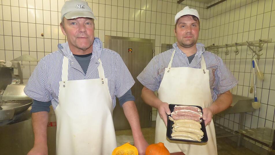 Als klassische Bratwurstspezialität warten Peter und Marc Wehrfritz mit ihrer groben fränkischen Rostbratwurst auf. Kürbisbratwürste gibt es alljährlich von der Metzgerei Wehrfritz auch beim Kürbisfest in Muggendorf - allerdings in einer Zeit, in der die Kürbisse reif sind und es auch ganz unterschiedliche einheimische Kürbissorten gibt.