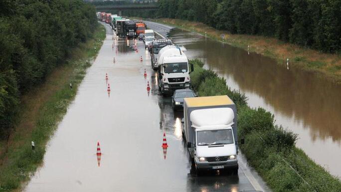 So pauschal will und kann Georg Götz von der Polizei Forchheim die Situation am Mittwochmorgen im Landkreis Forchheim noch nicht bewerten. "Die Lage ist sehr angespannt", räumt er allerdings ein. Besonders heikel: Der Raum Gosberg/Wiesenthau und die überflutete Autobahn 73 auf Höhe des Parkplatzes bei Eggolsheim. "Hier steht das Wasser 20 Zentimeter hoch, die Fahrzeuge die da hineingefahren sind, werden jetzt mit Polizeibegleitung und in Schrittgeschwindigkeit durch diese Stelle geleitet. Tiefer gelegte Autos müssen zwangsläufig warten." Die A 73 wurde zwischen den Anschlussstellen Forchheim-Nord und Hirschaid gesperrt. Der Verkehr Richtung Norden wird ab Forchheim-Süd umgeleitet, auf der Gegenfahrbahn wird ab Bamberg-Süd eine großräumige Umleitung über die Bundesstraße 505 und die Autobahn 3 eingerichtet. Da die Regenfälle gegen Abend nachließen, rechnet die Polizei Forchheim damit, dass die Autobahn zwischen 19 und 20 Uhr wieder freigegeben werden kann.