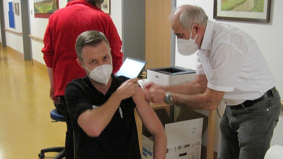 Im Demenzzentrum Lindenhof in Unterleinleiter sind am Montagnachmittag, 28. Dezember 2020, die ersten Corona-Impfungen verabreicht worden. Pflegedienstleiter Matthias Bretfeld war die erste Person im Landkreis Forchheim, die den Piks in den Oberarm bekommen hat. "Für uns ist die Impfung so etwas wie ein verspätetes Weihnachtsgeschenk", sagt Bretfeld.